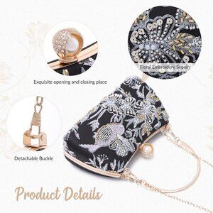 [Stylish Design]: Featuring intricate floral embroidery and sparkling sequins, this beaded clutch purse is the epitome of elegance, perfect for weddings, bridal parties, and proms