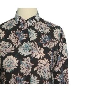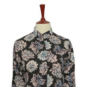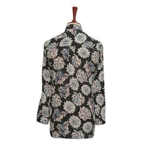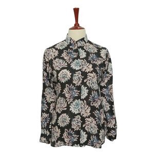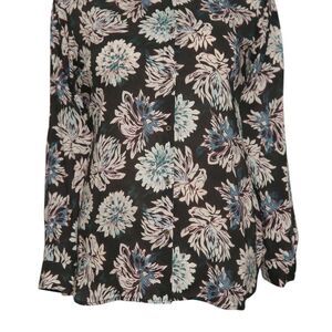 Womens Floral Shirt Black Pink Blue Blouse Button Up Dressy Top Medium Work