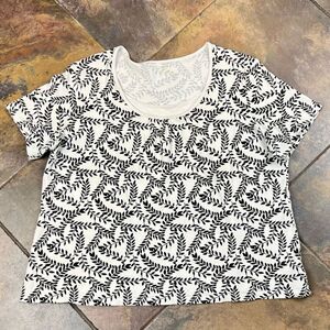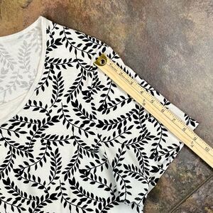 Women’s Floral Short Sleeve Layered Look Blouse. I can not see the size of this top but it is measuring at a 3X. Please see all photos for exact sizes. There is a light stain on the top. Please see photos. Measurements in photos. In good, pre-loved (used) condition.