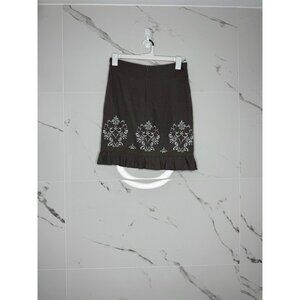 Women's Floral Skirt Size S Knee Length Ruffle Hem Casual embroidered Linen