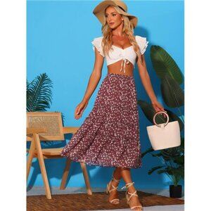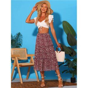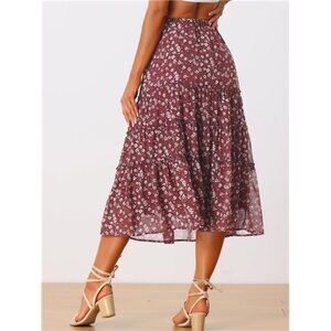 Women's Floral Skirts Chiffon A-line Long Tiered Ruffle Boho Midi