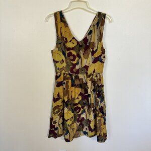 Womens Floral Sleeveless Silk Dress 10 Med Yellow Purple Knee Length Cocktail