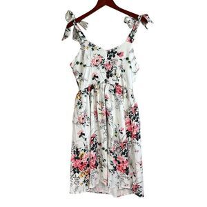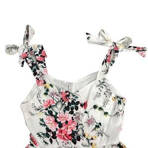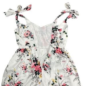 Womens Floral V-Neck Strap Tie Empire Waist Fit & Flare Sundress White Small