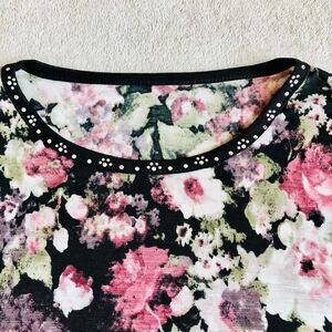 Women’s Floral and Rhinestone 3/4 Round Neck Top