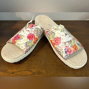 Women's Flower Pattern Flat Sandals Casual Open Toe Summertime Size 9.5 NWOT