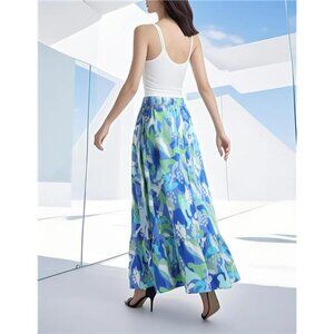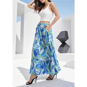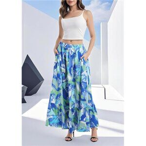 Women's Flowy Boho A-Line Pleated Maxi Skirt Blue
