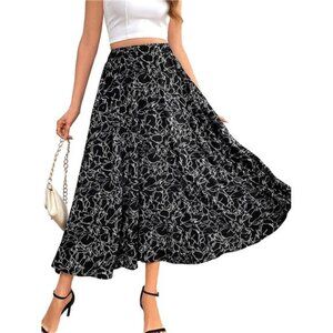 The women's skirt features a floral, high waist, elastic waistband, two pockets, and midi length. Pockets on both sides for convenient and practical use. You can put small things like mobile phone keys into it. High-elastic pleated waist and elegant hem for a variety of bodies.