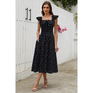 Features: This boho-inspired dress features a flattering smocked waist, stylish square neckline, and ruffled shoulder straps for a fun, feminine touch. The elastic around the neck, waist, and straps ensures a perfect fit, while the pleated A-line hem adds movement. Plus, it has two side pockets — perfect for keeping small essentials handy!