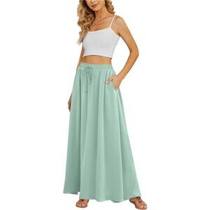 Women's Flowy Maxi Skirt Pleated High Waisted Mint Green