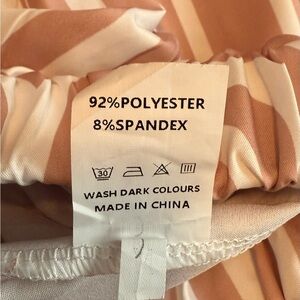 These women's flowy palazzo pants in size medium feature a stylish tan and white geometric pattern, perfect for various occasions like travel, weddings, parties, or casual wear. The pull-on closure and high rise make them comfortable and easy to wear. Made of polyester and spandex, these wide-leg pants have a 30-inch inseam and convenient pockets for added functionality. The bohemian and beach themes add a trendy touch to the design, making them a great choice for the summer and spring seasons.
