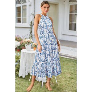 Features: This breezy maxi dress features a sleeveless halter neck, tiered ruffle hem, and a pretty floral print. The lightweight, breathable fabric feels soft against your skin and the adjustable back tie gives a customizable fit. Plus, it has convenient side pockets for your essentials.