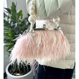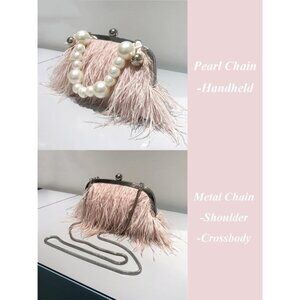 ⚡Women's Fluffy Ostrich Feather Pearl Banquet Evening Light Pink Clutch Bag