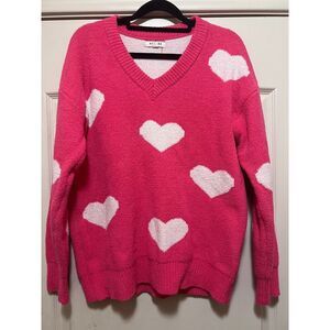 womens Soft fluffy pink and white sweater