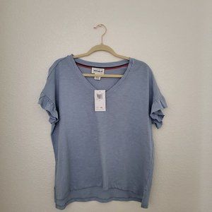 Women's For the Republic Blue V-neck Tee Shirt Ruffled Sleeves
