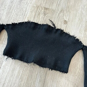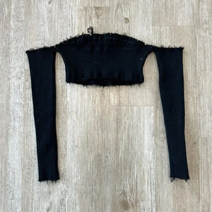 Womens Forever 21 Black Cropped Long Sleeve Top - L
