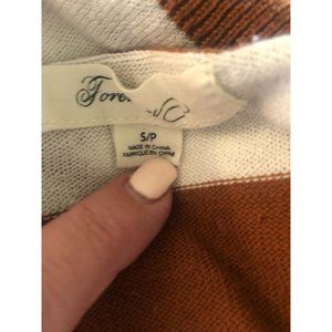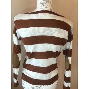 Women's Forever 21 Brown/White Striped Sweater w/Patchwork Elbows