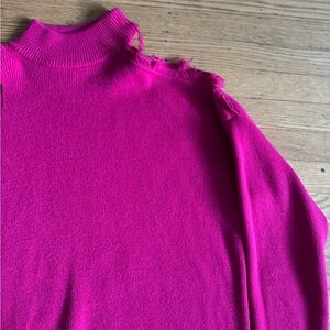 Women’s Forever 21 Distressed Fuchsia Turtleneck Sweater Size M Casual,Oversized