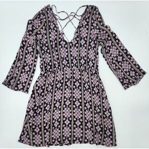 This Forever 21 dress in size L features a floral pattern in black color, with a V-neckline and sleeveless design. Made from polyester fabric with a rayon feel, the dress has a pullover closure and long sleeves. Perfect for summer and spring occasions, this midi-length dress has a fit & flare style and is machine washable. Ideal for parties, cocktails, or casual wear, this dress is a stylish addition to any woman's wardrobe.