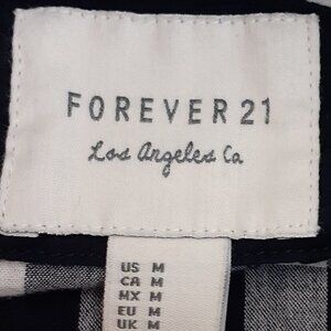 Women's "Forever 21" Navy & White Check Long Sleeve Button Shirt; Size M
