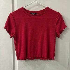 Women’s short sleeve cropped baby tee from Forever 21, size medium. Ribbed material with cute lettuce edge on sleeves and bottom. Hot pink/berry color. In great condition!