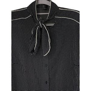 Womens Forever 21 Tie Neck Dot Blouse Size M Black Black EUC Long Sleeve 5075