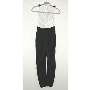 Womens Forever 21 jumpsuit. The bottom is black and pleated. The top is a white halter wrap style. There is a back zipper and side pockets.Size small.
