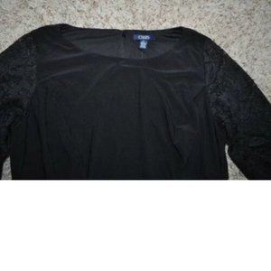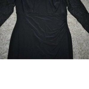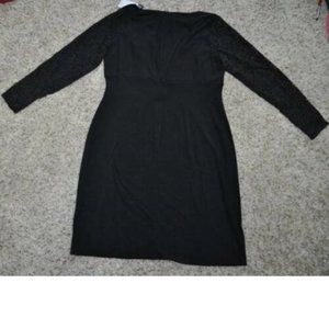 Womens Formal Dress Chaps Black 22W Sheath Long Lace Sleeve Party Back Zip Plus