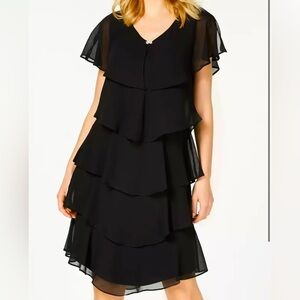 Women’s Formal Dress SLNY Black Tier Short Sheer Caped overlay Flow Gown