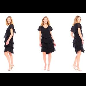 Multiple tiers add texture to this caped dress from SLNY that's designed in lightweight Georgette fabric for an effortless flow.
