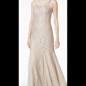 Women’s Formal Dress Size 14 Evening Champagne RM Richards Lace Beaded Pearl C16