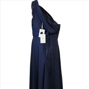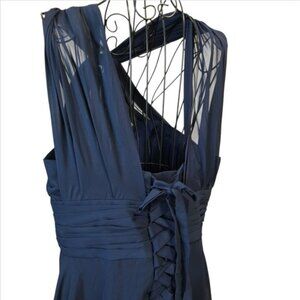 Women's Formal Elegant Navy Blue Evening Gown Size 16 Lace Up Maxi Dress NWT