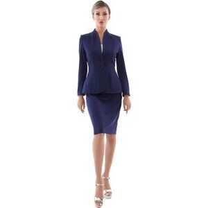 *EFFORTLESSLY ELEGANT FEATURES for successful women: with this simple design by our famous designer team, the classy top feature 2 button, color block with black, decoration waist lines, long sleeves, swan neck. The skirt features pencil sihouette, midi length. You will be confident enough to achieve successes in your career. Jacket length: 22"-25" (depends on size) Skirt Length: 29"-30" (depends on sizes)