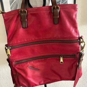 Women's Fossil Explorer Messenger Bag Fold Over Tote Crossbody RED Large