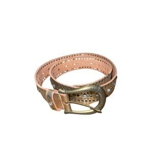 Womens Fossil Studded Rhinestone Belt Western Buckle Cowgirl Gold Metallic