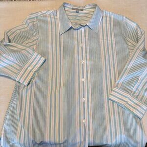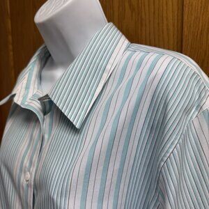 Women's Foxcroft Non-Iron Blue & White Striped Blouse Top - Size 20W