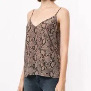 Womens Frame Chocolate Brown Black Python Print Sleeveless Silk Cami Tank Top XS