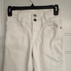 Excellent condition, women's Frame "Le Crop Mini Boot" jeans in "Blanc" white denim. These jeans do stretch some.