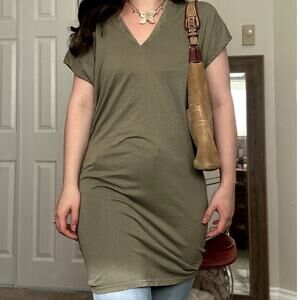 Women's Frame Medium Sage Green Le V Mini T-Shirt Dress Tee