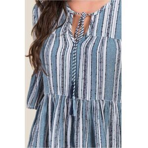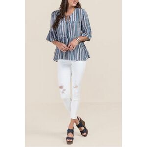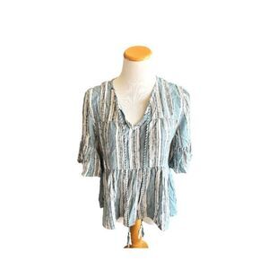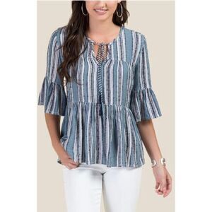 Womens Francescas Blue Rain Sierra Striped Peplum Top - Sz S