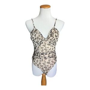 Womens Francesca’s Collections Meraki Zoey Animal Print Mesh Bodysuit - Sz S