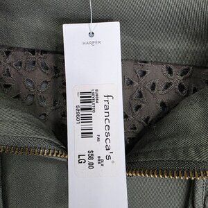 Womens Francescas Harper Olive Green Utility Jacket Lace Cutout Full Zip Size L