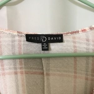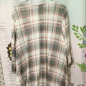 Plus size 3/4 sleeve plaid tunic with laces on the neckline.