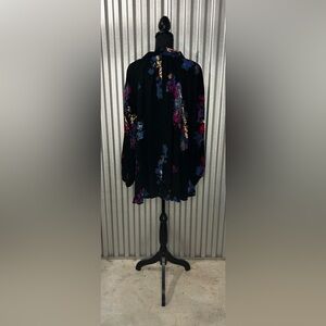 Women’s Free People Black Blue Button Down Long Sleeve Floral Mini Dress Small