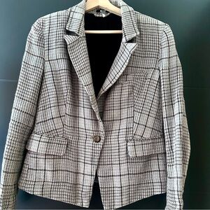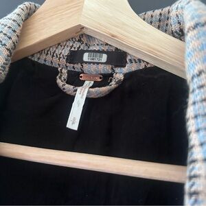 Free People Chess Blazer 100% Linen Plaid Tweed Blazer women’s size small