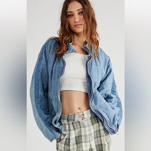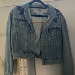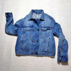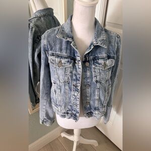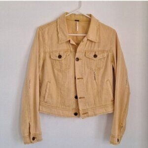 Stylish and versatile cream denim jacket for women. Perfect for layering and adding a chic touch to any outfit.