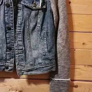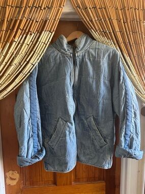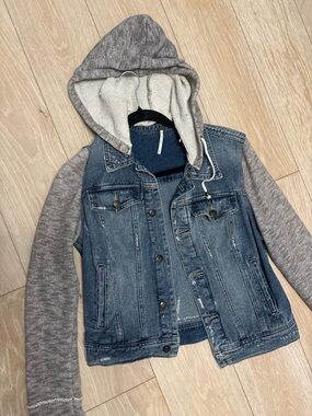 Womens Free People Denim Jacket Knit Size Small Hooded