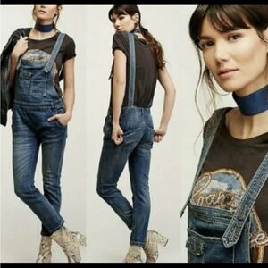 Women’s Free People Milo Medium Wash Distressed Denim Overalls Sz 25