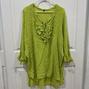 Women’s Free People One Green Bright Poppy Ruffled Collar Small S Blouse Shirt