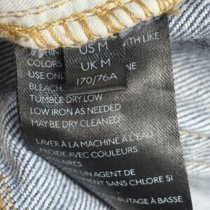 The product is a pair of women's Free People blue jean cut-off shorts with a belted waist, size M. These shorts are designed for a regular fit and are perfect for a casual and stylish look. The belted waist adds a trendy touch to the classic cut-off style, making them versatile for various outfits and occasions. Perfect for the warm weather, these shorts are a fashionable choice for any woman's wardrobe.