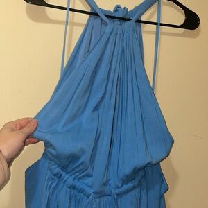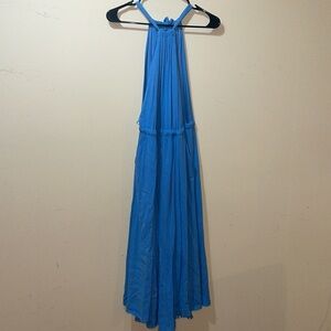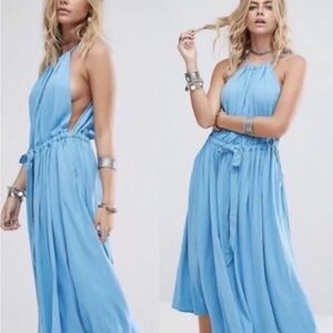 Womens Free People Spring Love Drape Midi Blue Halter A-line Skirt Dress